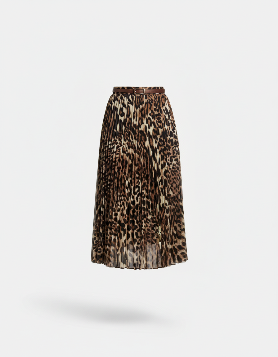 Cette jupe plissée à imprimé léopard est une pièce audacieuse et élégante pour votre garde-robe.