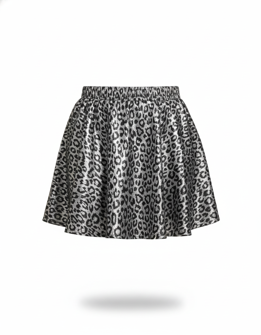 La Jupe Léopard Argentée Évasée Chic : Osez l'Éclat