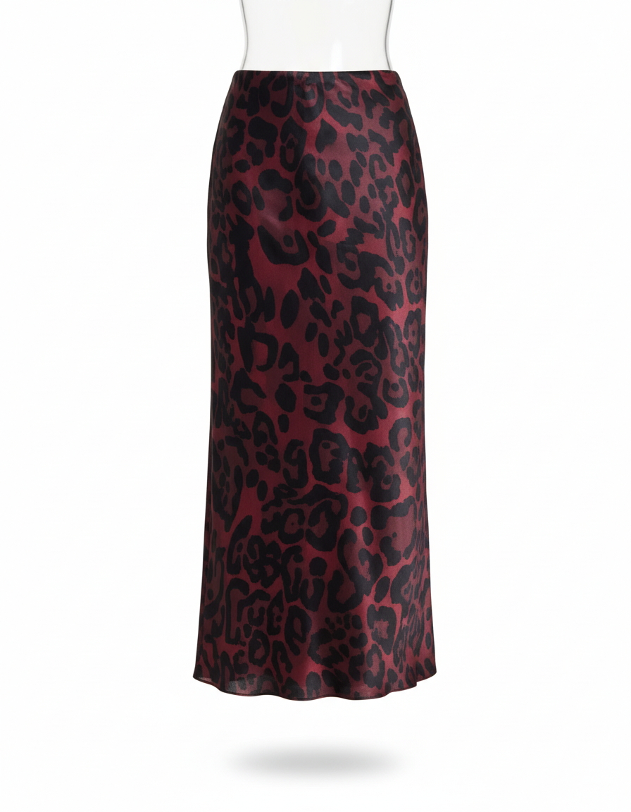 Jupe Léopard Bordeaux Satinée Élégante Longue