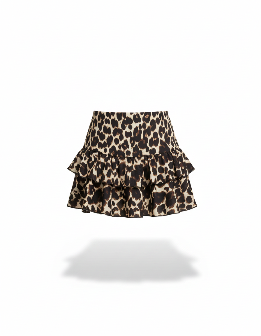Jupe Léopard Bouffante Courte Chic à Volants