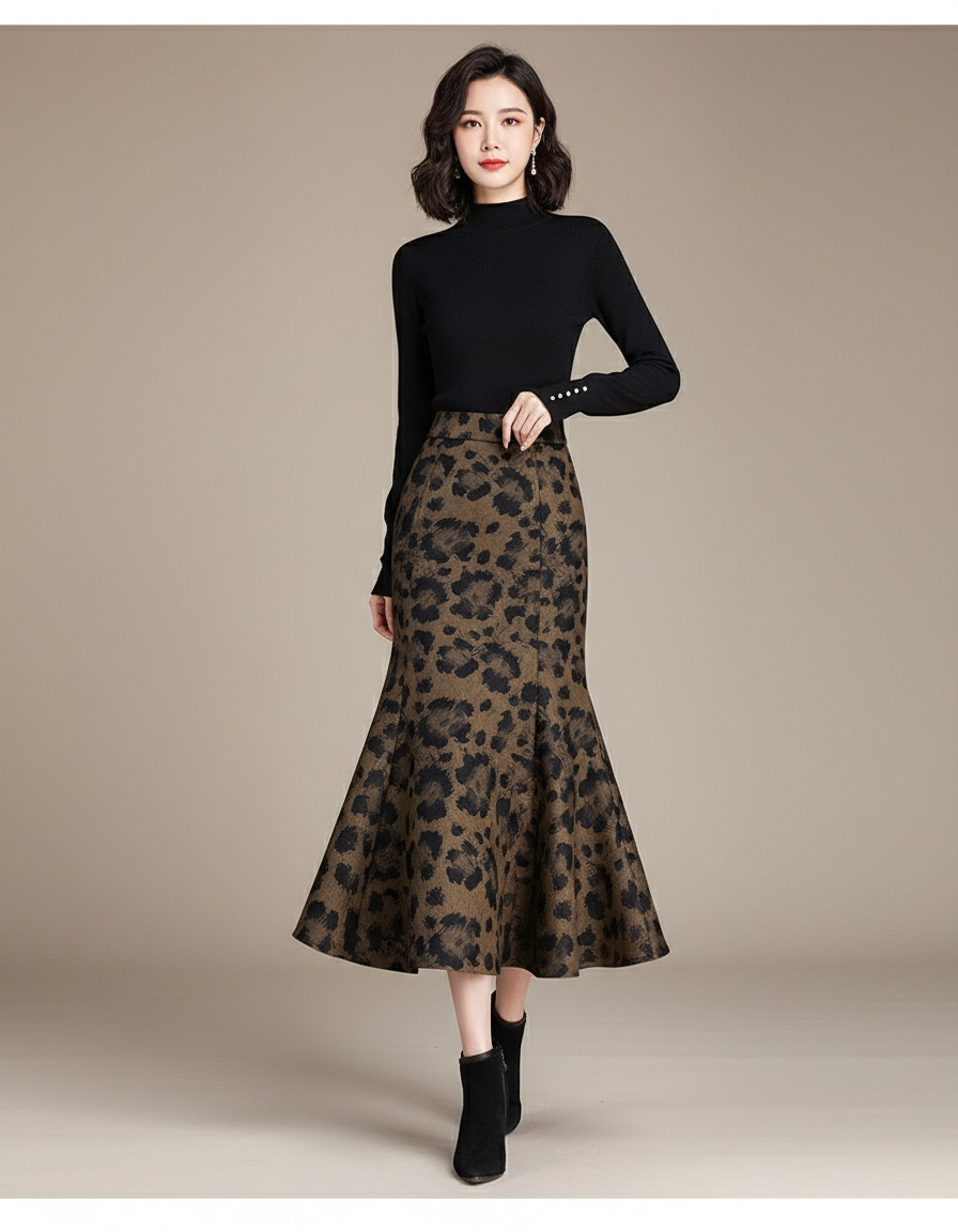 Jupe Léopard Coupe Sirène Élégante : L'Audace au Bureau