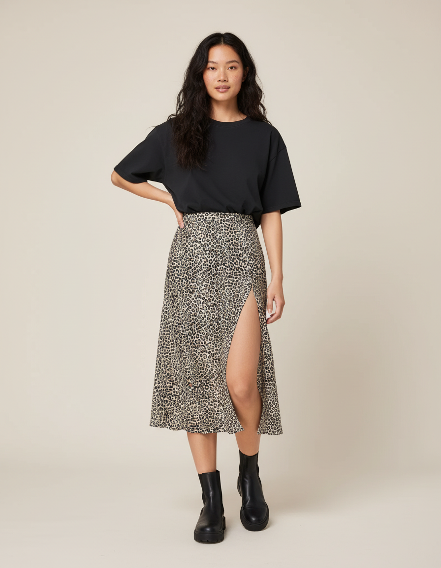 La Jupe Léopard Fendue Midi : L'Élégance Décontractée Réinventée