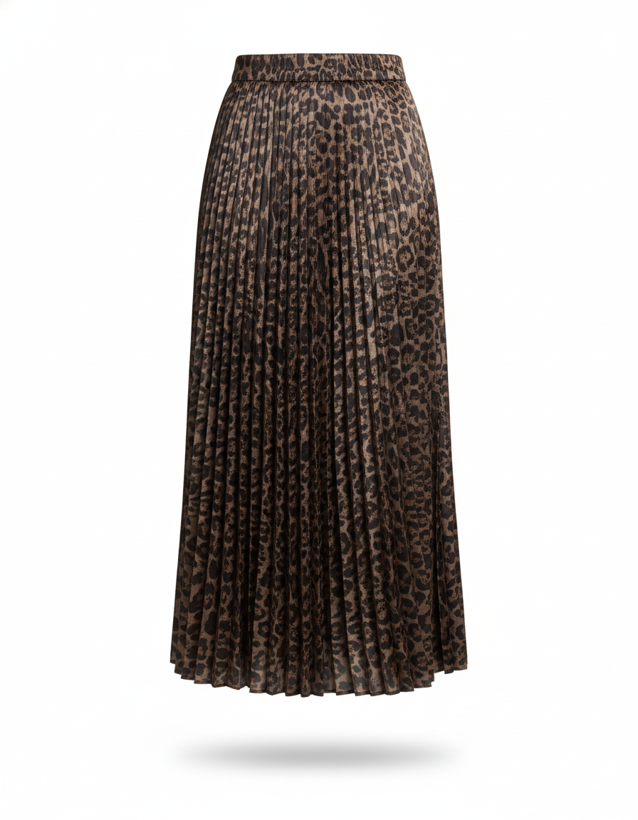 La Jupe Leopard Fluide : Le Plissé Satiné qui Révèle Votre Audace Chic
