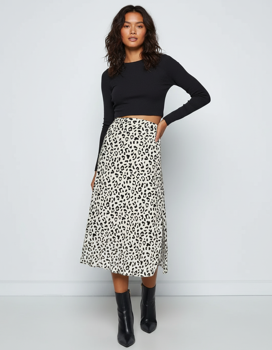La Jupe Léopard Fluide Fendue Élégante est votre passeport pour un style sans effort, du matin au soir. Pour une allure décontractée chic en journée, mariez-la avec un pull en maille fine et des bottines en cuir, ou un simple t-shirt blanc et des baskets pour une touche urbaine sophistiquée. En soirée, transformez-la en pièce maîtresse avec un caraco en soie, une veste ajustée et des talons. Son imprimé léopard intemporel et audacieux vous assure une présence remarquée, idéale pour toutes vos sorties et événements, du dîner mondain au vernissage.
