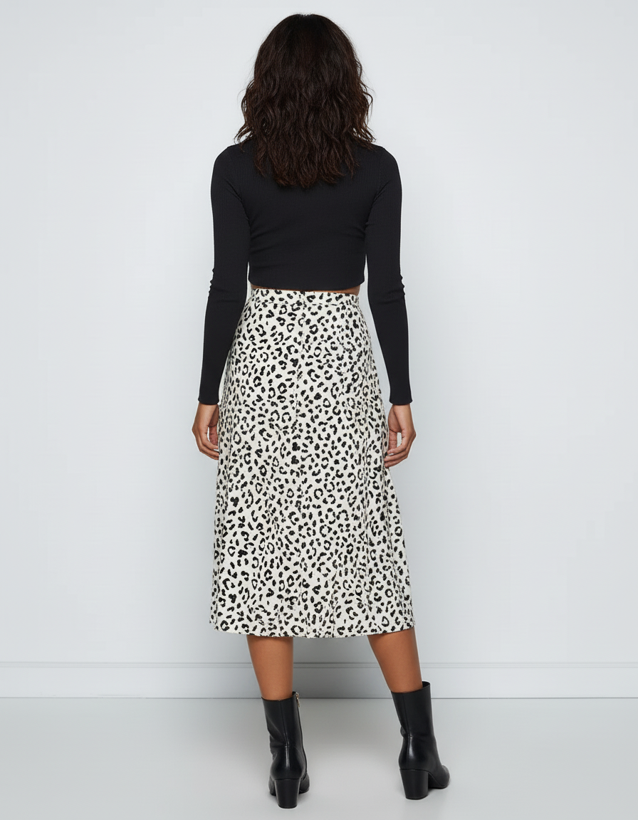 Adoptez une allure audacieuse et raffinée avec notre Jupe Léopard Fluide Fendue Élégante, parfaite pour toutes les occasions.