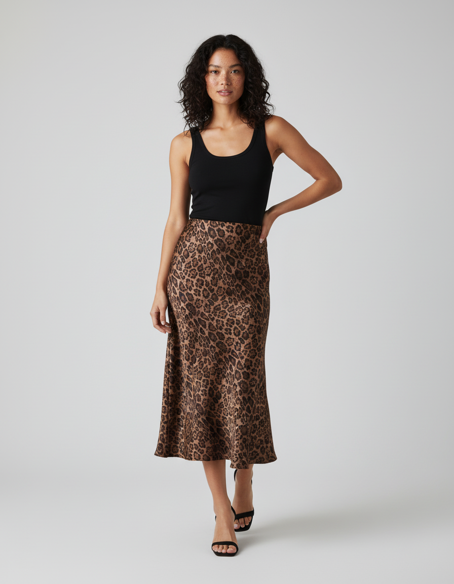 Élégance Réinventée : La Jupe Léopard Fluide Midi