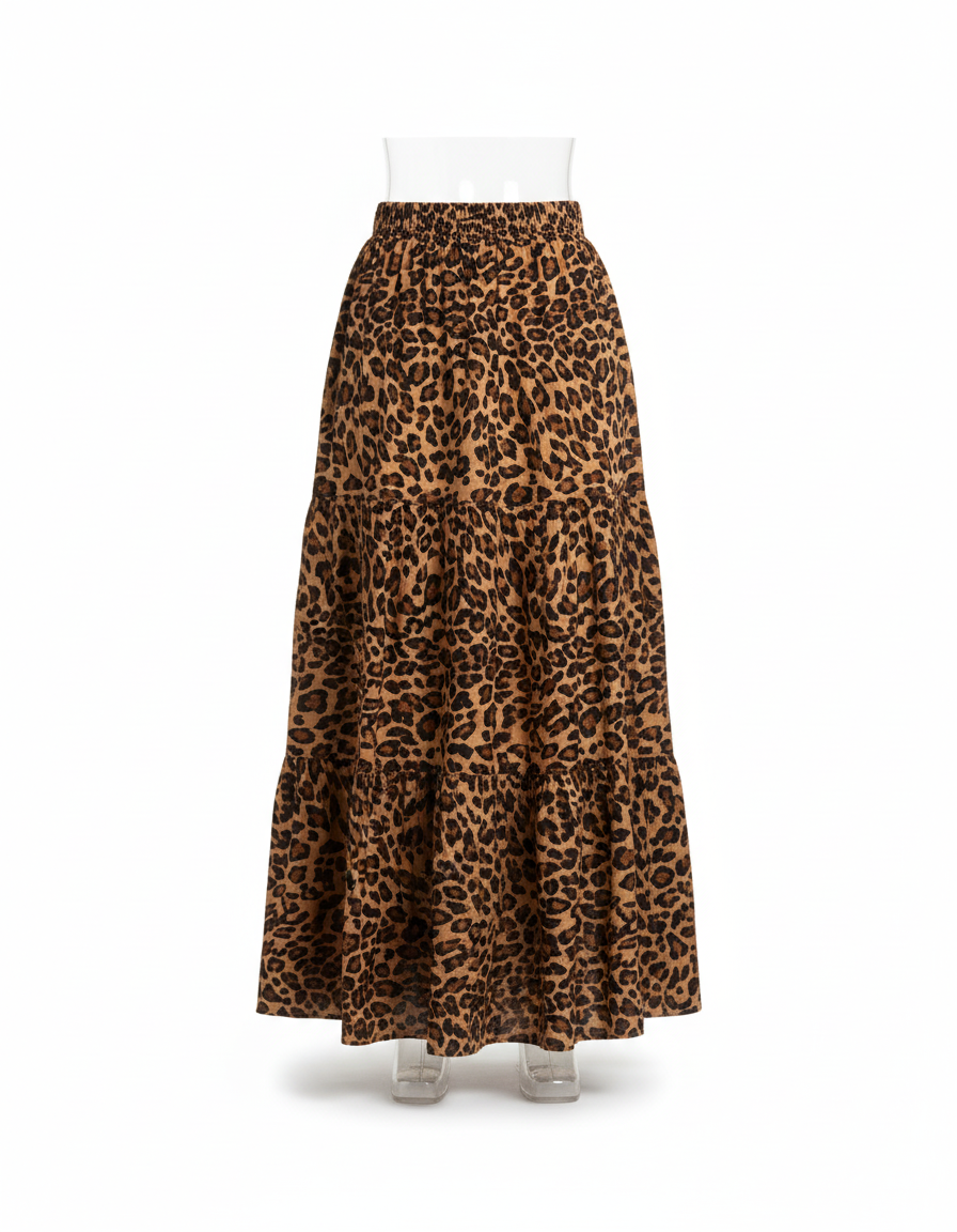 Usage de la Jupe Léopard Longue Fluide Décontractée