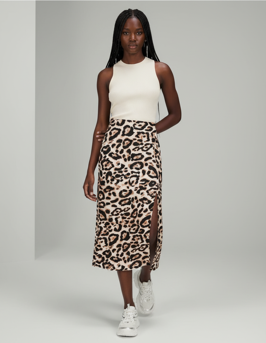 Jupe Léopard Midi Fendue Fluide : L'Audace Redéfinie