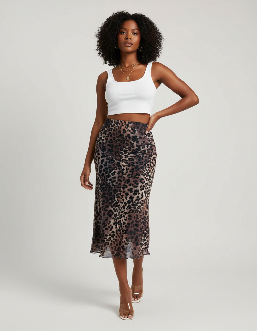 Jupe Léopard Midi Fluide Élégante : Votre Allié Style Incontournable