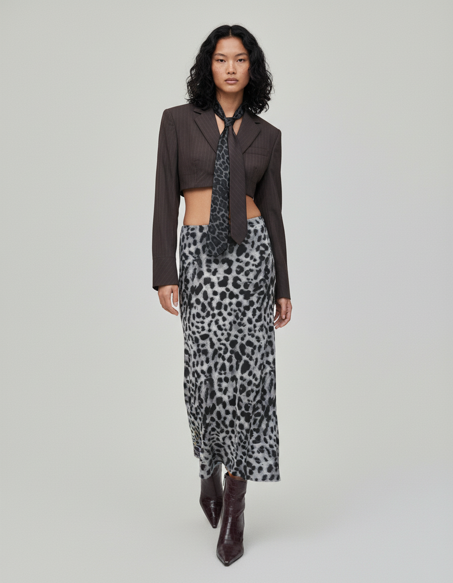 Jupe Léopard Midi Grise : L'Élégance Moderne Réinventée