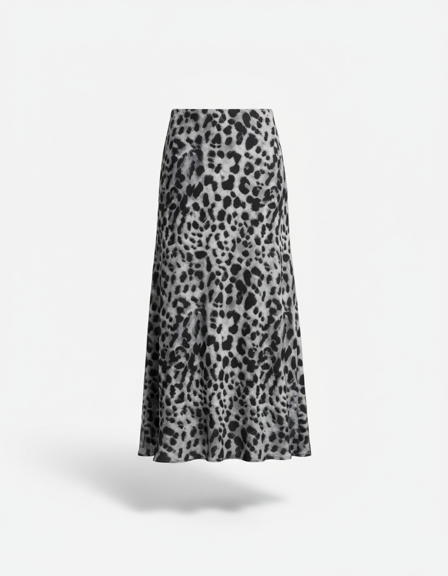 Jupe Léopard Midi Grise Élégante : L'Audace Raffinée