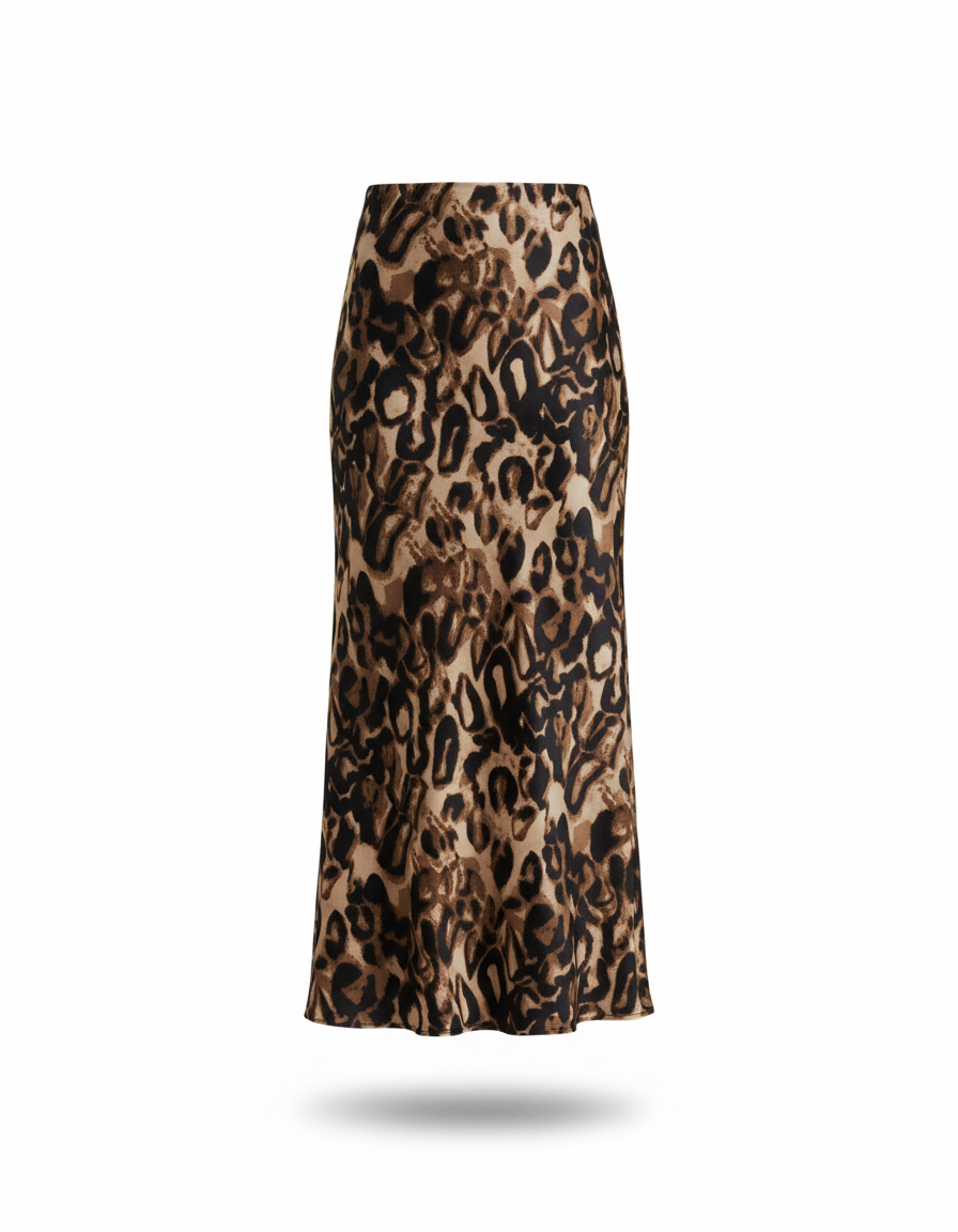 L'Élégance Instinctive : Jupe Léopard Midi Satin Fluide