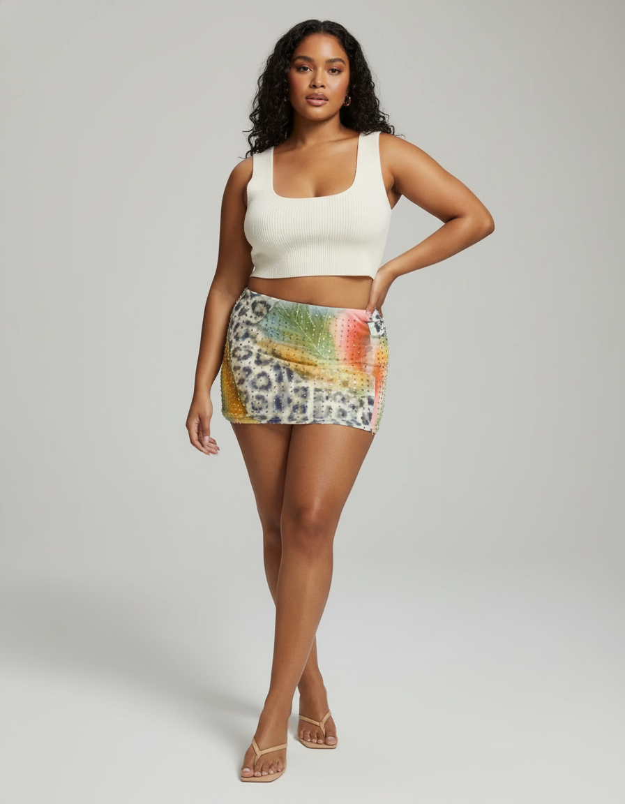 Révélez Votre Audace Y2K : La Jupe Léopard Multicolore Strass