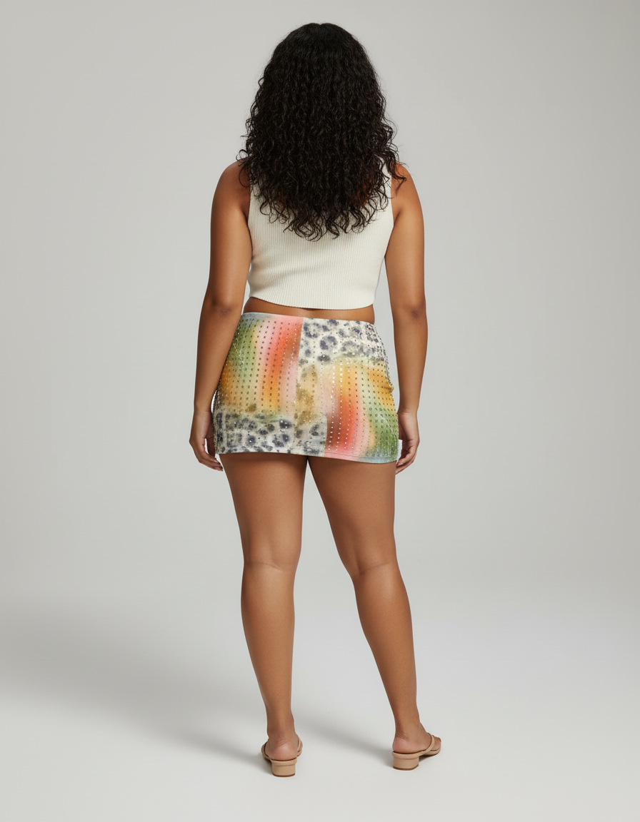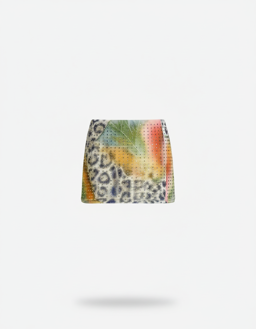 L'Audace Réinventée : Jupe Léopard Multicolore Strass Y2K
