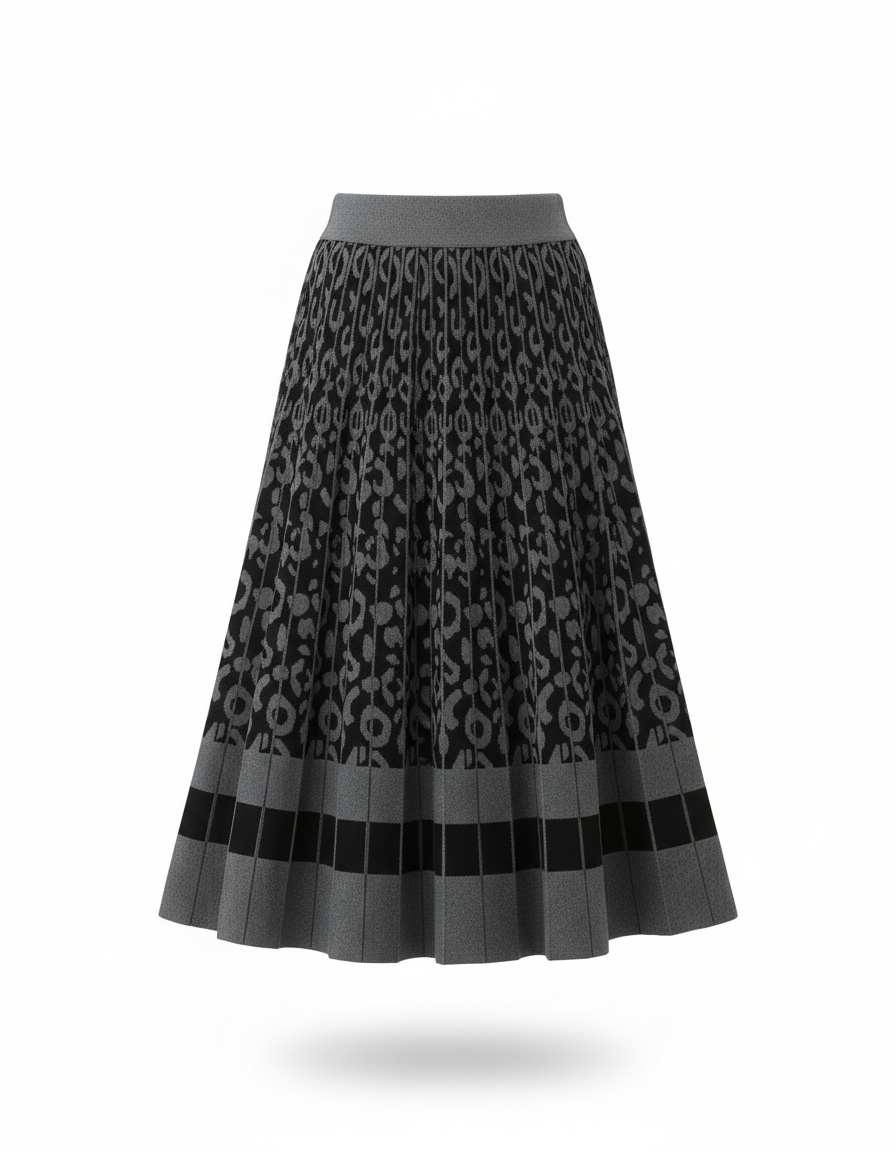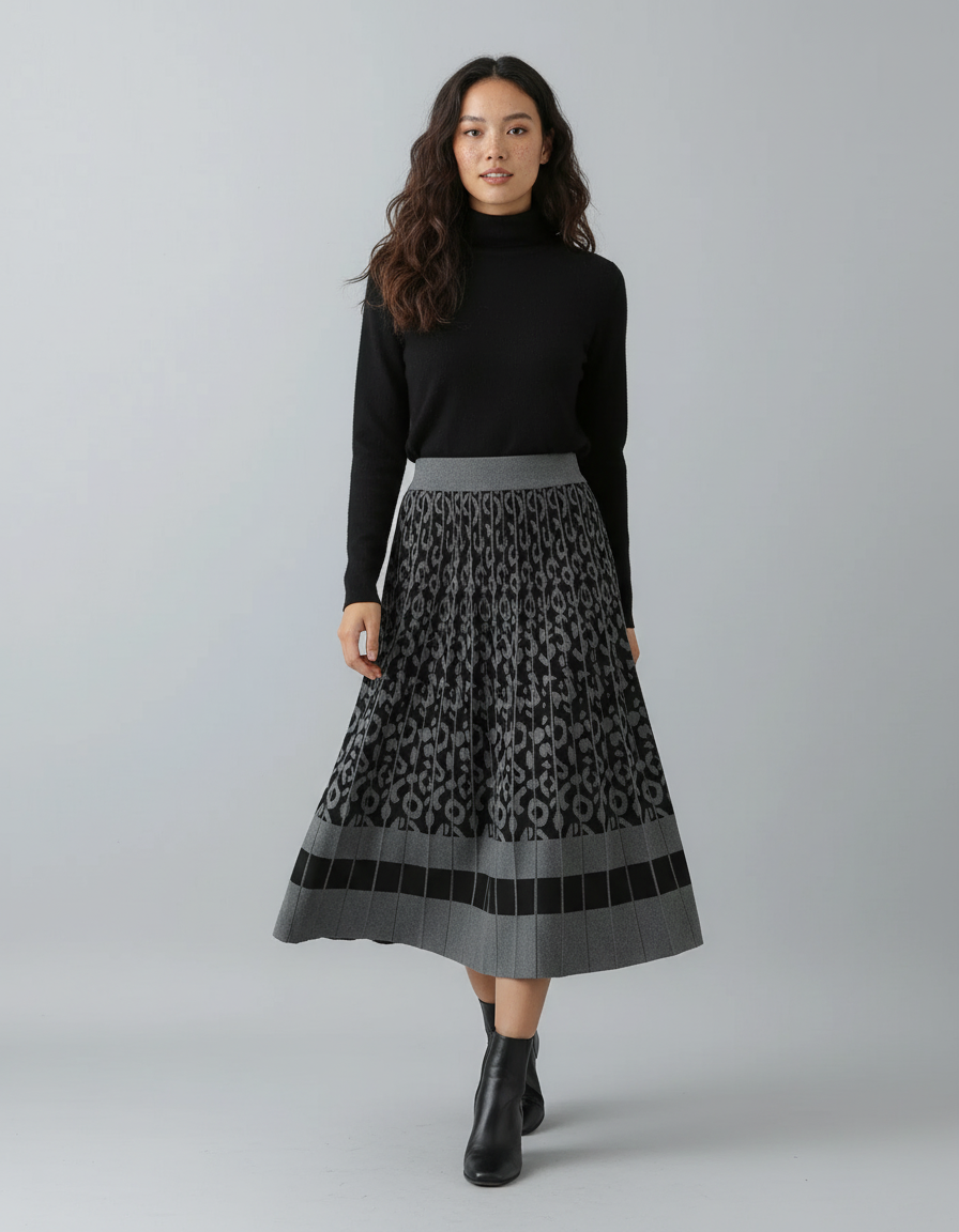Jupe Plissée Tricotée Caractéristiques Jupe Léopard Noir
