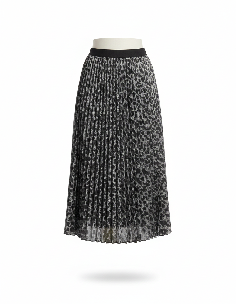 Élevez votre style avec notre jupe plissée à imprimé léopard noir et blanc, parfaite pour toutes les occasions.