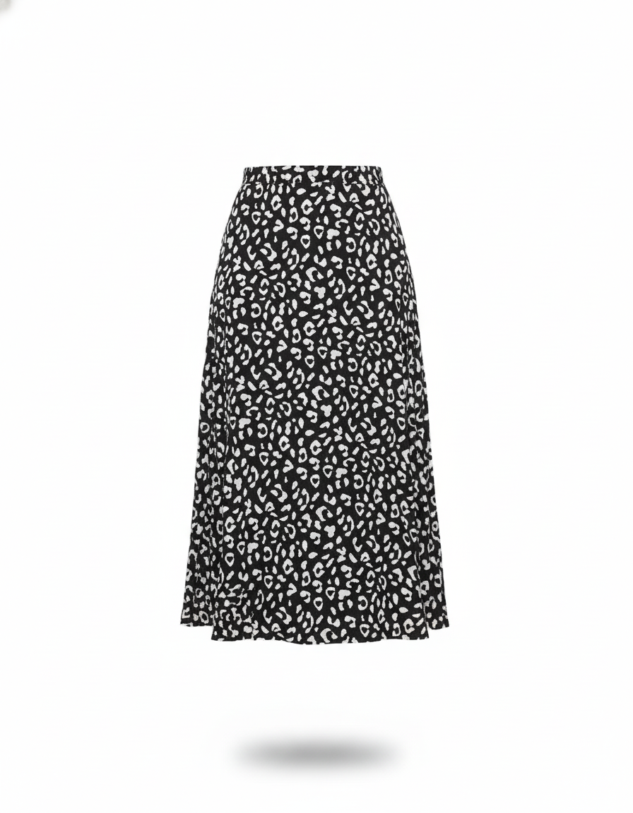 La Jupe Léopard Noire Fluide Élégante : L'Audace Raffinée