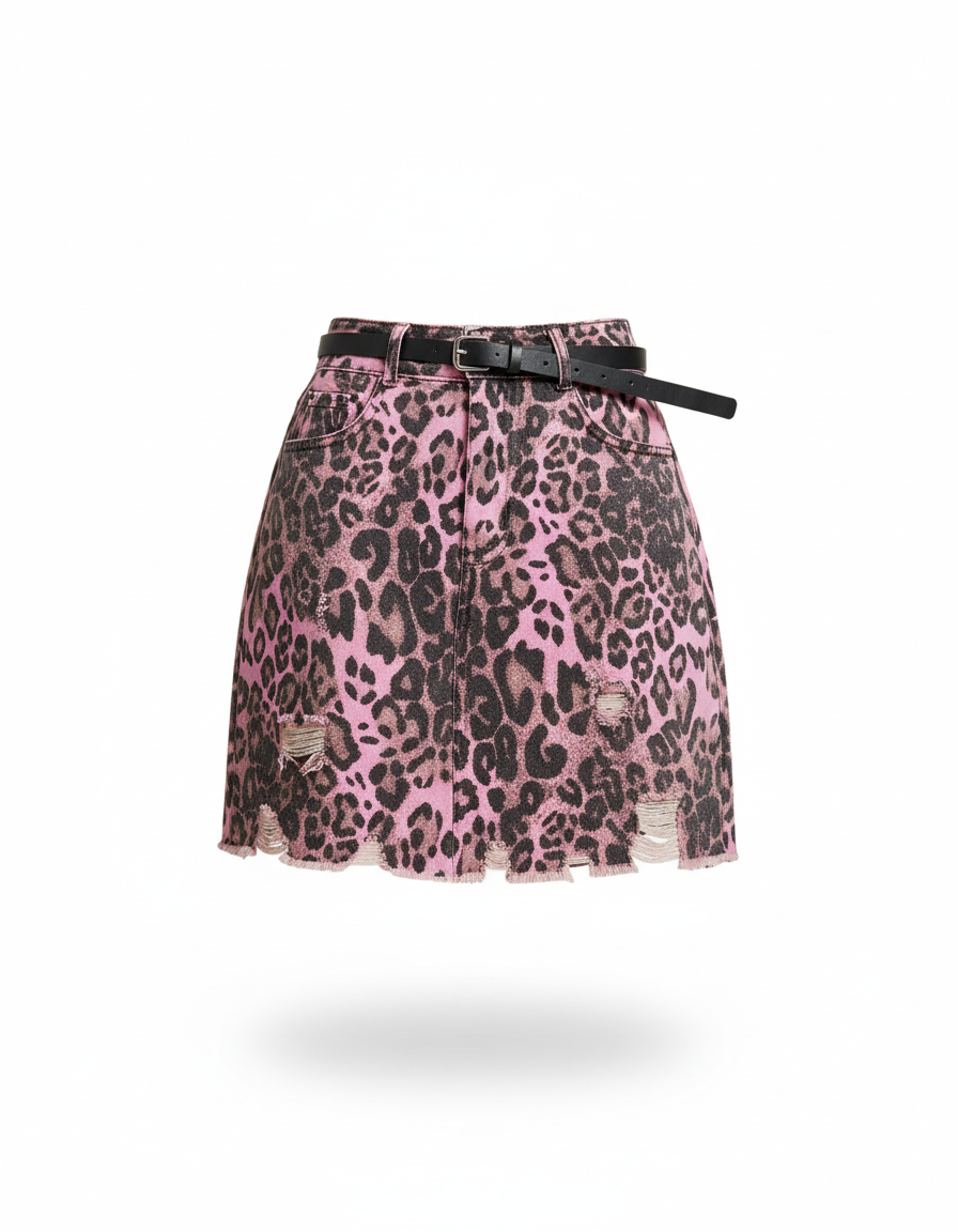 Embrace Your Edge: La Jupe Léopard Rose Déchirée