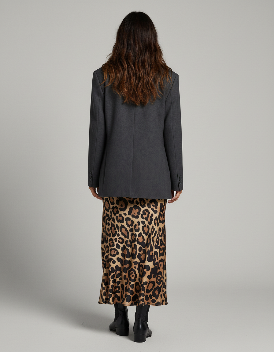 Révélez Votre Élégance Instinctive avec la Jupe Léopard Satinée